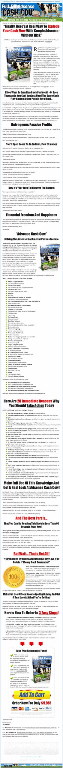 Full Fat Adsense Cash cow will teach you how to increase your income with Adsense ads, tackle daily challenges, develop profitable websites, and realize all your financial goals. Not merely theory or good ideas, this downloadable books spells out the secrets used by myself and some of the highest Adsense earners. Taken together and implemented every day, these strategies will transform you business, your cash flow and your life beyond your wildest dreams!