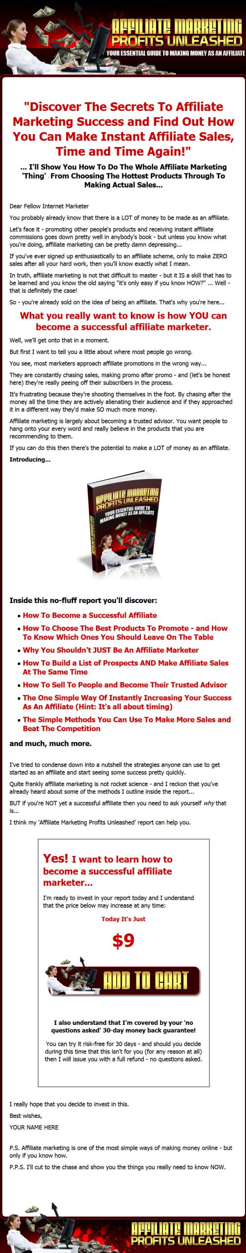 I think my 'Affiliate Marketing Profits Unleashed' report can help you.