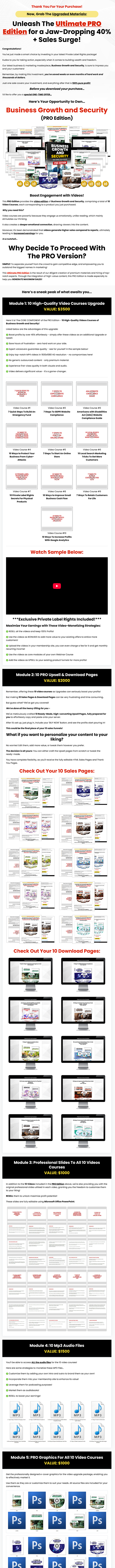 - Video Upgrade – This PRO Edition provides the video edition of Business Growth and Security, comprising a total of 10 Video Courses, each corresponding to one of the report kits above. Remove all the guesswork and time-consuming effort with compiling everything yourself with this ready-to-go kit. Provides an individual video for each report, allowing you to either sell each package on its own or all together in this huge bundle.