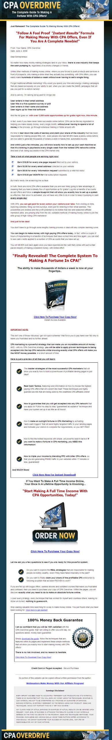 Unlike other methods of making money online, where you are forced to push products and services in front of prospects, only making a dime when they actually buy something, with CPA offers, you can easily make hundreds of dollars a week without ever having to sell a single thing.