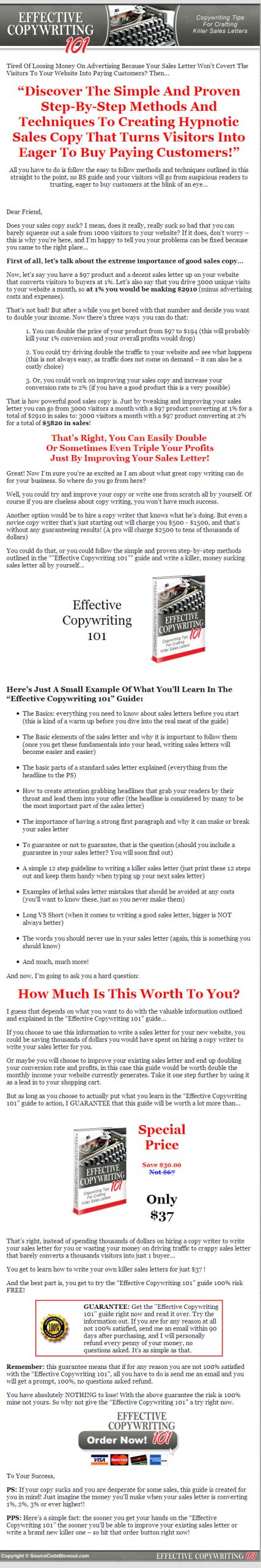 You could do that, or you could follow the simple and proven step-by-step methods outlined in the “"Effective Copywriting 101"” guide and write a killer, money sucking sales letter all by yourself…