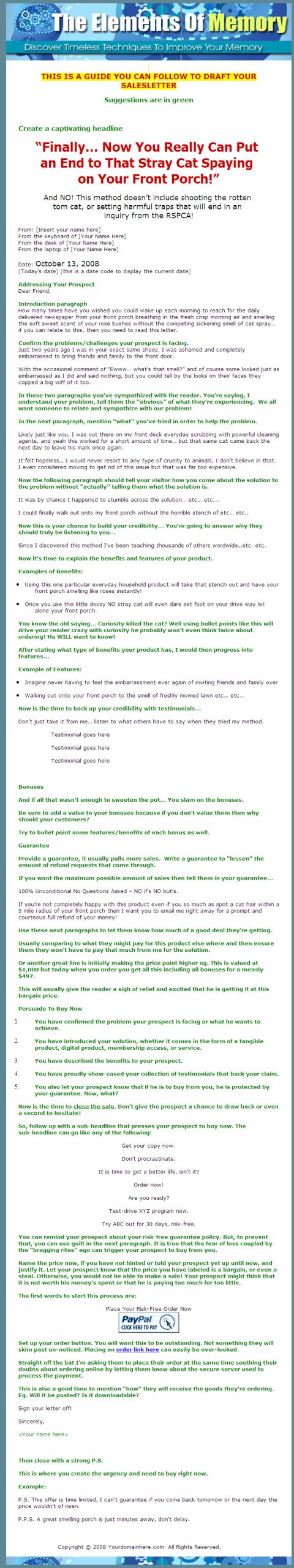 Salespage and thank you letter are mere templates, but carry great detail about how to best draft your sales letter.