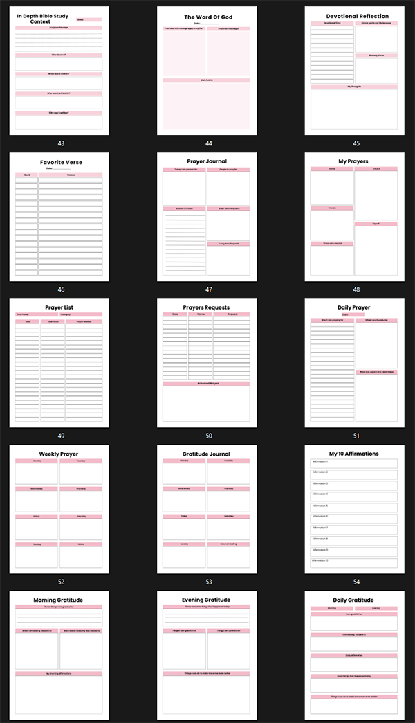 Create and sell faith-based planner printables with this customizable pack. Includes Bible study, prayer, and devotional journals with editable Canva templates.
