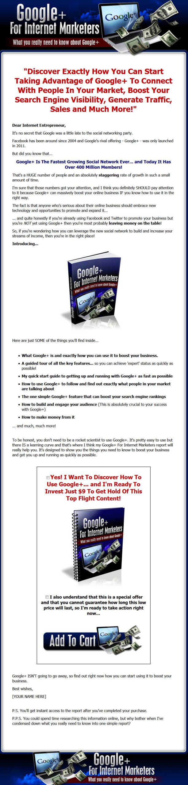 To be honest, you don't need to be a rocket scientist to use Google+. It's pretty easy to use but there IS a learning curve and that's where I think my Google+ For Internet Marketers report will really help you. It's designed to show you the things you need to know to boost your business and get you up and running as quickly as possible.
