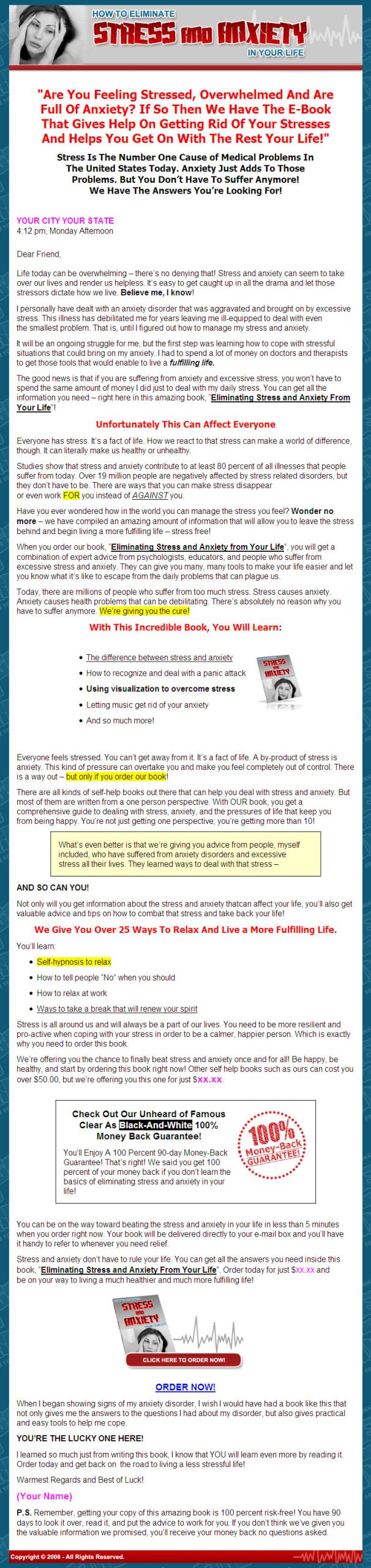 Not only will you get information about the stress and anxiety thatcan affect your life, you’ll also get valuable advice and tips on how to combat that stress and take back your life!