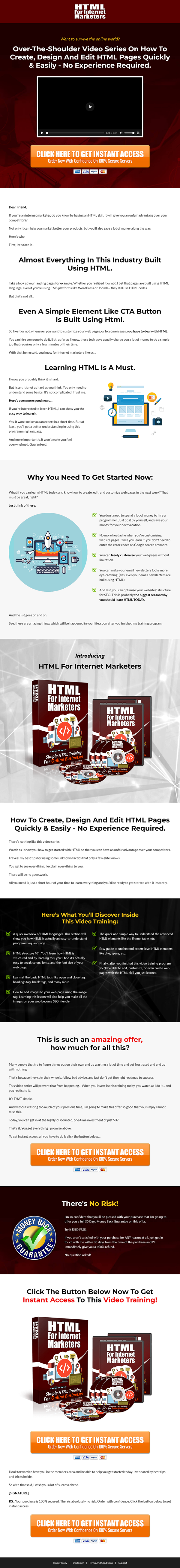 HTML for Internet Marketers MRR Videos with master resale rights is a set of videos that covers how to utilize HTML for any internet marketer when working on sites!