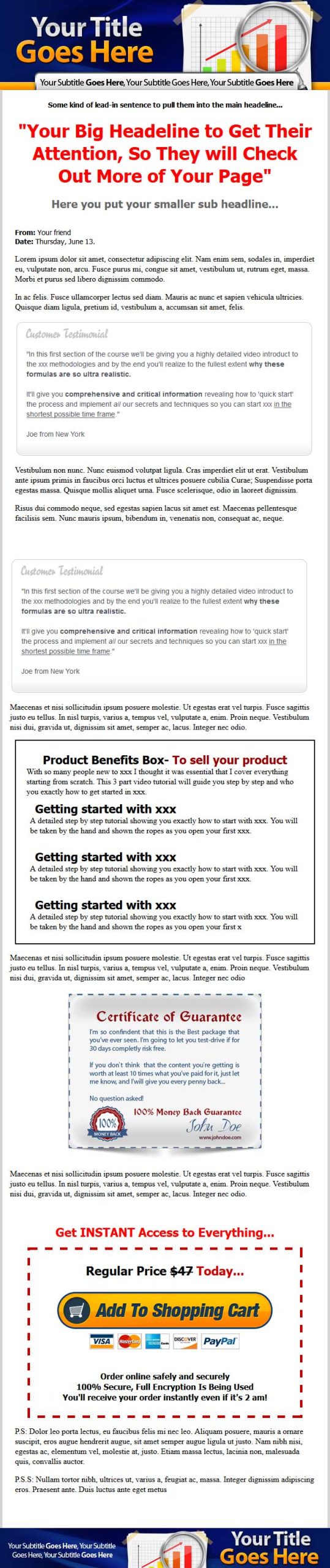 - Salespage with all the sales elements already in place, including: Testimonial boxes, Product Benefit listings box, High quality Guarantee graphic image, Call to action box with buy button that's proven to increase sales conversions.