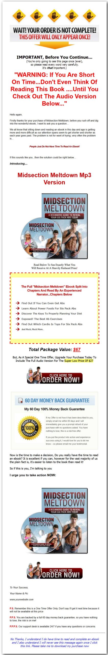 What I must stress at this time now is NOT the tiny amount you'll invest in this book but how much you'll LOSE OUT if you don't! Understand that you could really be missing out. Don't let anything stand in the way between you and your dream of having a sexy and trim waist . You see, how much longer are people going to learn the HARD WAY before investing in themselves and the future?