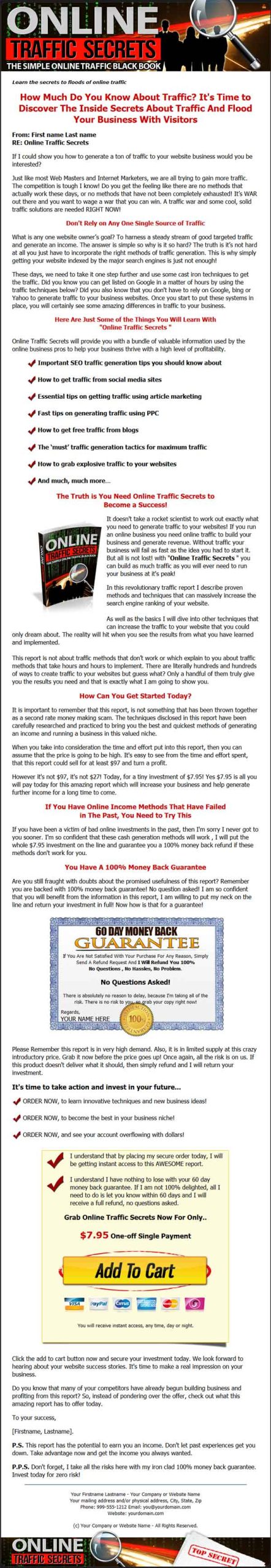 Online Traffic Secrets will provide you with a bundle of valuable information used by the online business pros to help your business thrive with a high level of profitability.