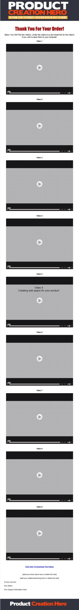 - Download Page – We’ve gone the extra step to make this easier for you and your customers. The product video’s are already built into the download page for you. Once your customer buys, they can immediately view the videos, quick and easy.