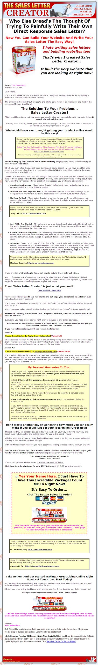 Not only does it totally format your sales letter for you just as the sales letter here is formatted it also builds your sales page website for you!