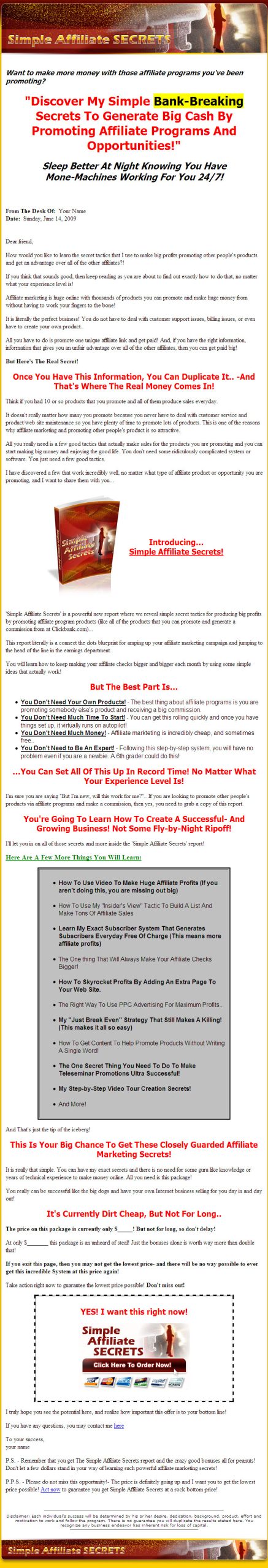 I’ll let you in on all of those secrets and more inside the ‘Simple Affiliate Secrets’ report!