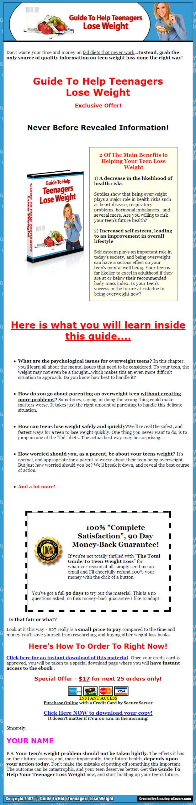 Don’t waste your time and money on fad diets that never work…Instead, grab the only source of quality information on teen weight loss done the right way!