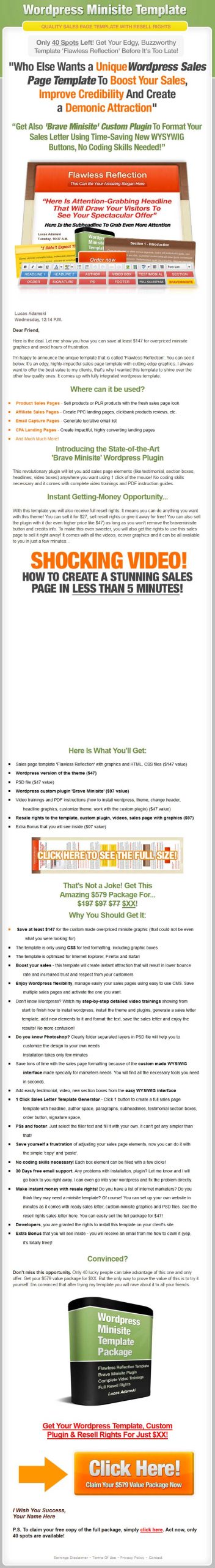 I’m happy to announce the unique template that is called ‘Flawless Reflection’. You can see it below. It’s an edgy, highly-impactful sales page template with cutting-edge graphics. I always want to offer the best value to my clients, that’s why I wanted this template to shine over the other low quality ones. It comes up with fully integrated wordpress template.